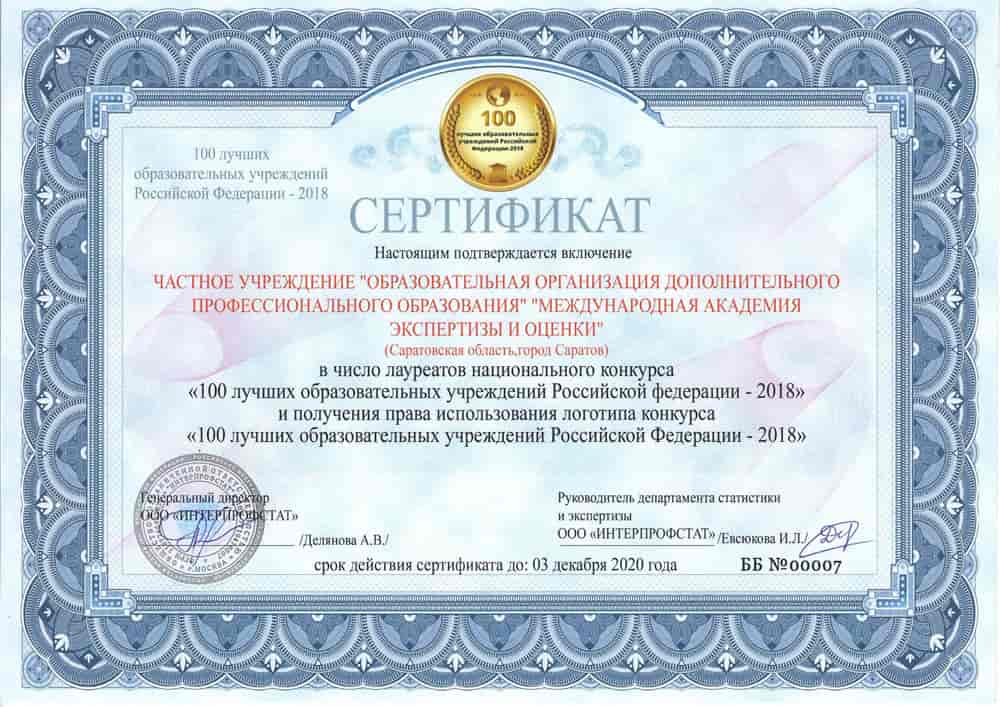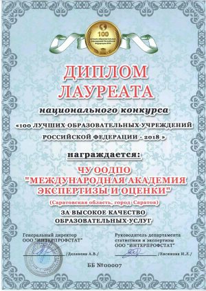 - ТОП-100 лучших образовательных учреждений России по данным Интерпрофстата в 2018 г.;
