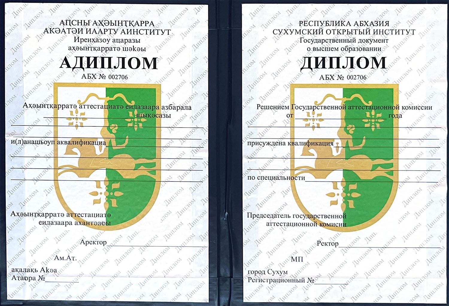 Чтобы поступить в российский ВУЗ, нужно сдать ЕГЭ. Но мы выдаём дипломы от Сухумского Открытого Института, зарегистрированного в Республике Абхазия, где нет ЕГЭ.