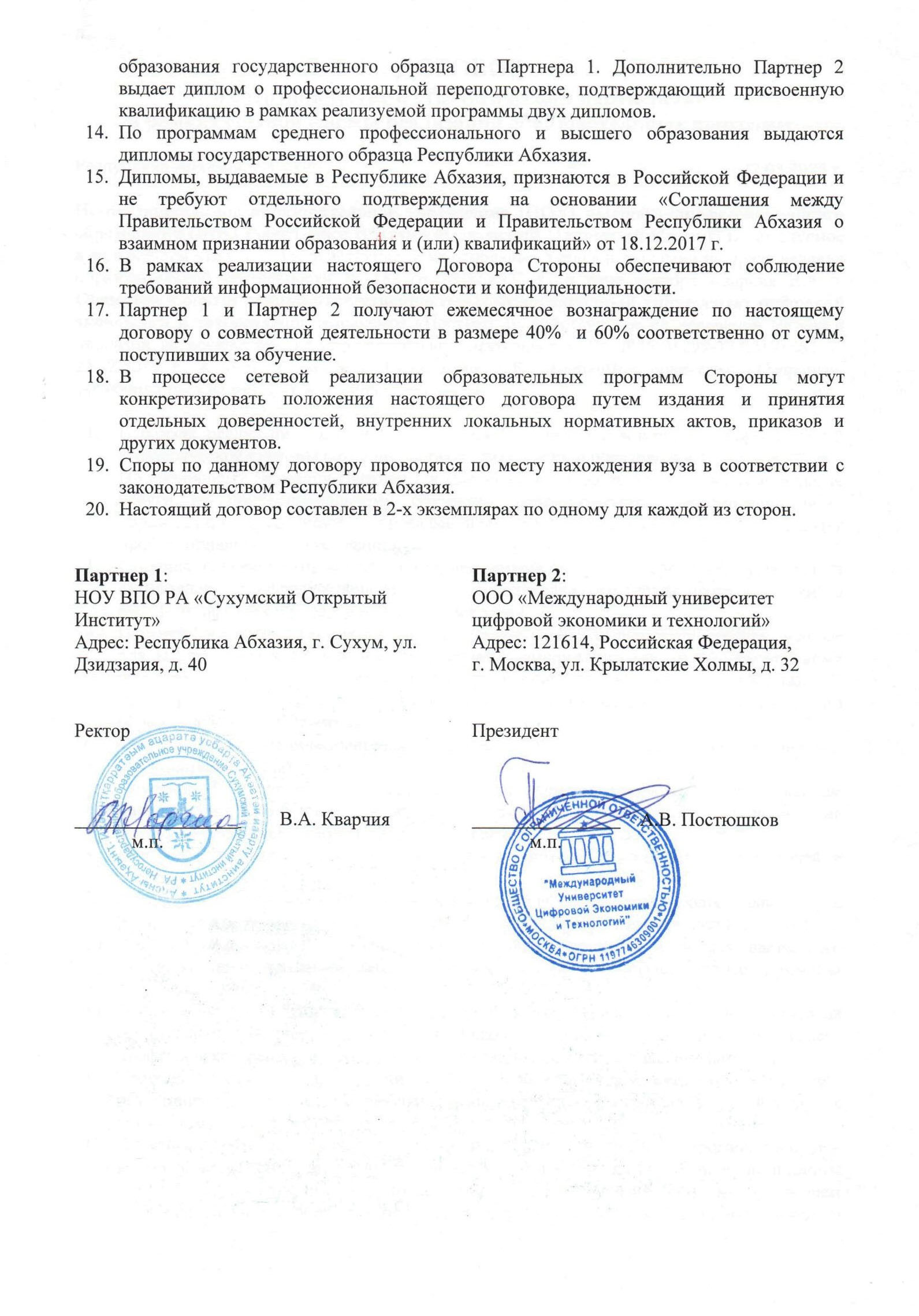 При этом дипломы абхазских ВУЗов приравниваютсяк российским и не требуют дополнительного подтверждения, согласно федеральному закону № 500-фз «О ратификации соглашения между Правительством Российской Федерации и Правительством Республики Абхазия о взаимном признании образования и (или) квалификаций» от 27.12.2018г.